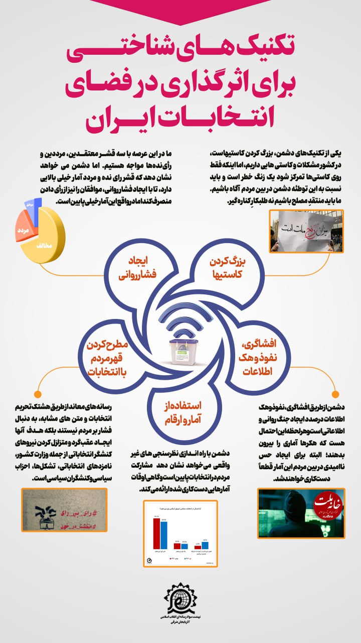 🔺قهر مردم با انتخابات، استفاده از آمار و ارقام با هدف ایجاد عملیات روانی، افشاگری، نفوذ و هک اطلاعات، بزرگ کردن کاستیها از جمله تکنیکهای شناختی رسانههای معاند برای اثرگذاری در فضای انتخابات ایران است.