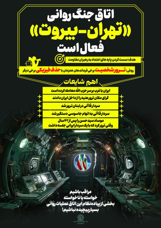 اتاق جنگ روانی «تهران-بیروت» فعال است 🔻 هدف: سست کردن پایه های اعتماد به رهبران مقاومت 🔻 روش: ترور...