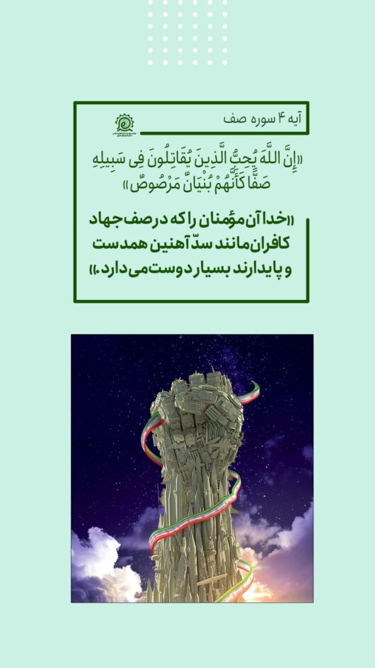 🌱خدا آن مؤمنان را که در صف جهاد کافران مانند سدّ آهنین همدست و پایدارند بسیار دوست میدارد.